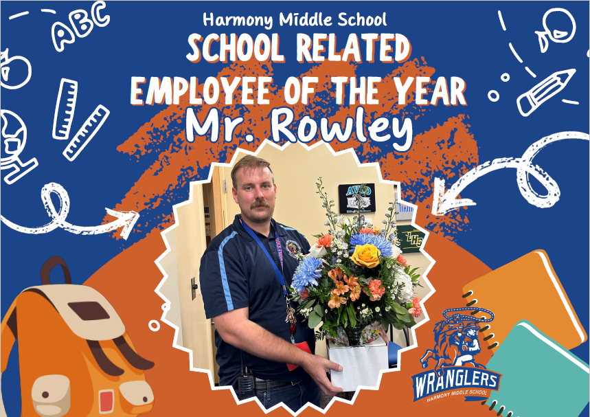 🎉👏 Huge congratulations to Mr. Rowley, our School-Related Employee of the Year at Harmony Middle School! 🌟